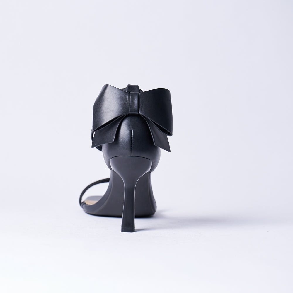 Black stiletto sandal with bow detail